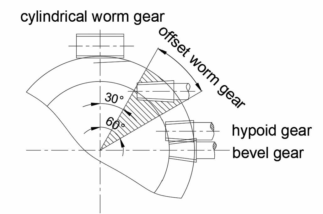 Generally, the shaft angle ∑=90°. The corresponding installation position of offset worm and worm gear is: the left hand of offset worm applies down offset, and the right hand of offset worm applies up offset.